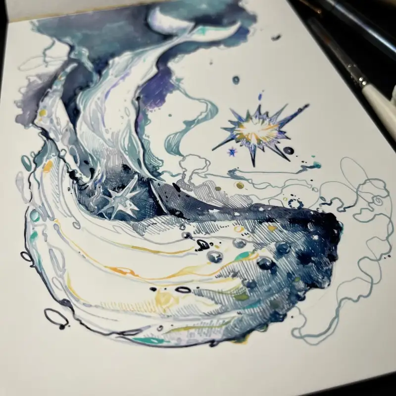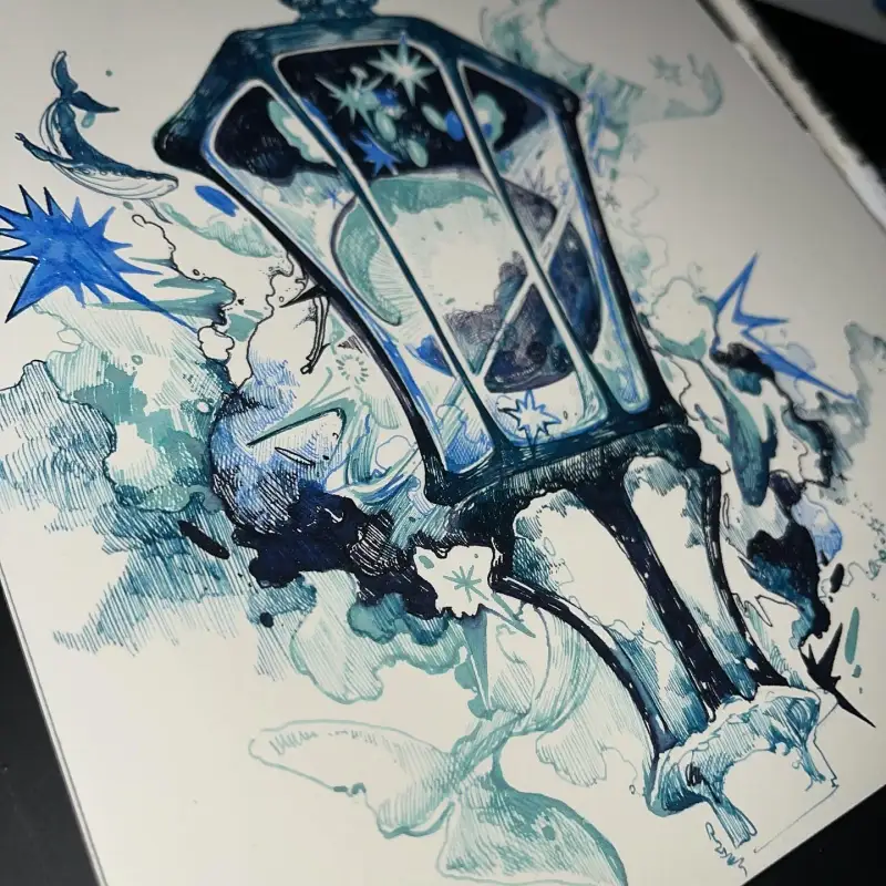 웜화이트는 코튼100의 아이보리빛의 수채화지였는데, 세목결이라서 펜이 부드럽게 그어지다보니 계획과 다르게 전부 만년필로 그려버렸네요. 따뜻한 색감이 색다르게 느껴져 좋았어요.