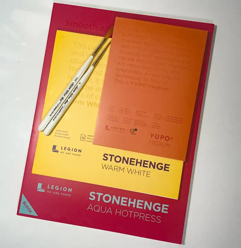 아쿠아 종이와 마찬가지로 100% 코튼의 수채화 전용지이지만 색연필을 사용해 그려보았어요. 스톤헨지 아쿠아보다는 요철이 조금 더 보이는 편이어서 종이 질감이 선명히 보이는 걸 좋아하시는 분들에게 취향일 듯 해요! 귀여운 정사각형 사이즈라 그림 선물하기도 좋겠다고 생각했어요. 그리고 종이가 살짝 노란끼가 도는 미색입니다.