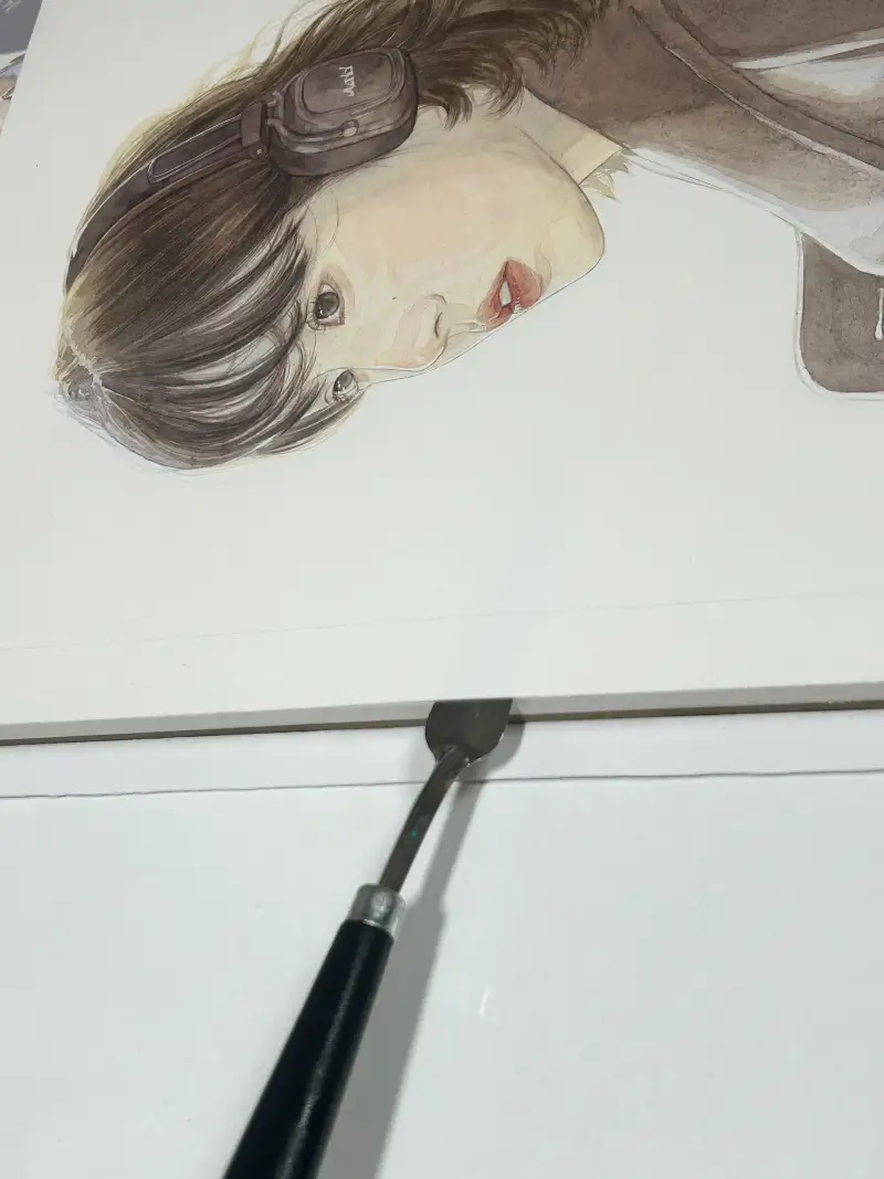 4면 제본이라 따로 보완을 하지 않아도 종이가 울지 않고, 위 사진처럼 그림을 완성하면 물감 나이프로 왼쪽면 가운데 부분에 넣어서 잘라내면 되는 간편함이 있어요. 수채화 전용지인 만큼 거슬리는 점 없이 가장 만족도 높은 종이였습니다!