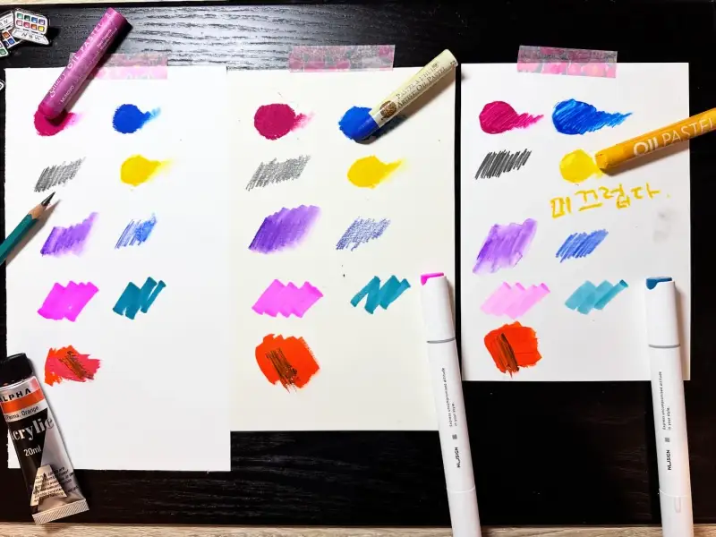 오일파스텔을 사용할때 블렌딩, 발색 모두 좋았고