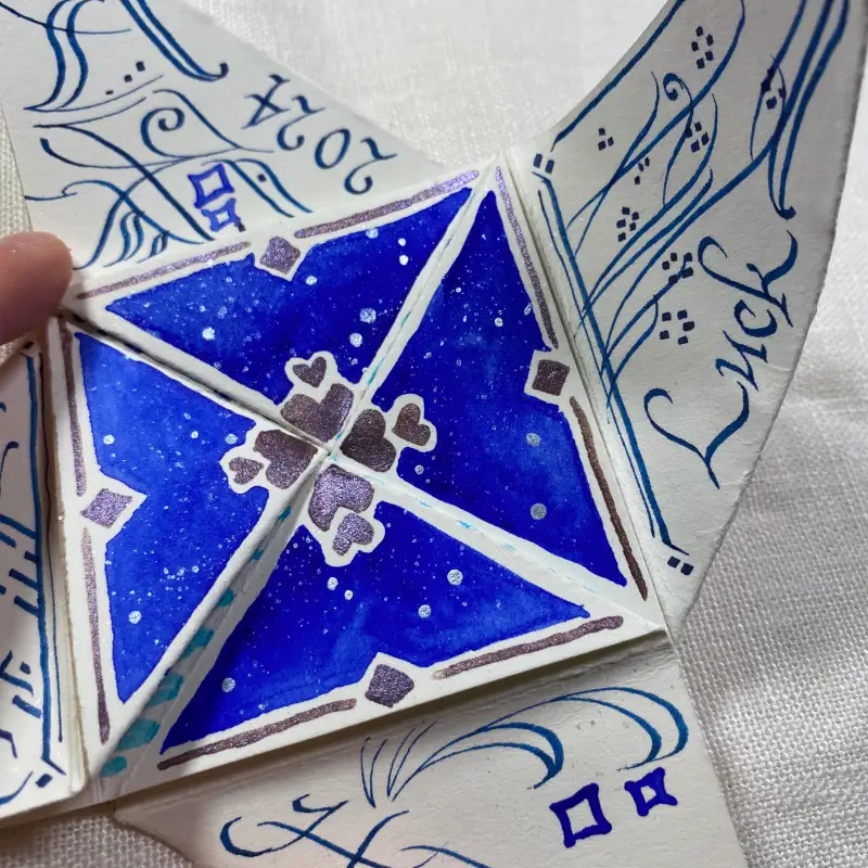 만들면서 수채화 물감, 펄 수채화 물감, 수성 마카, 만년필 잉크를 사용했는데 수채화 전용지라 그런지 무리 없이 잘 소화해내더라고요. 특히 번지기 쉬운 만년필 잉크도 번짐없이 종이 위에 발색됩니다.