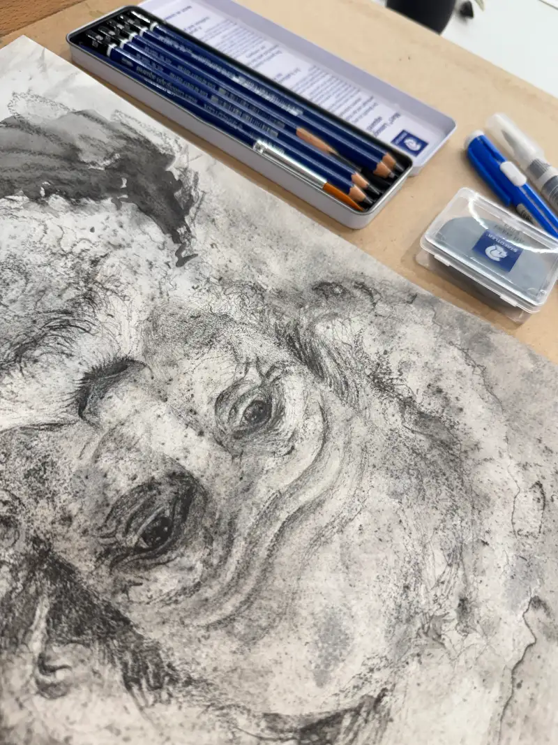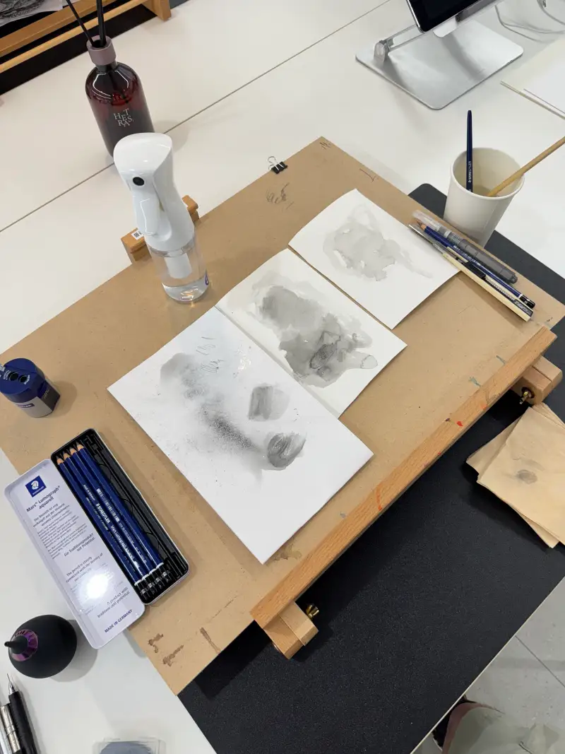 보통의 경우 저는 2B,4B,HB 세가지 종류만으로 드로잉 작업을 끝내는데 이렇게 많은 종류의 연필을 보니 설레기도 했습니다 :)