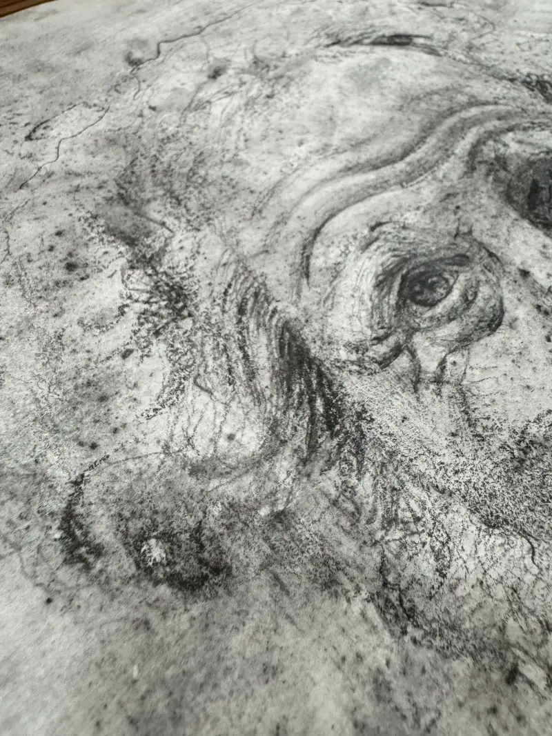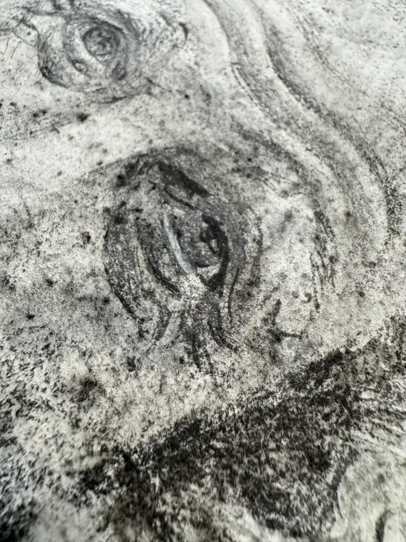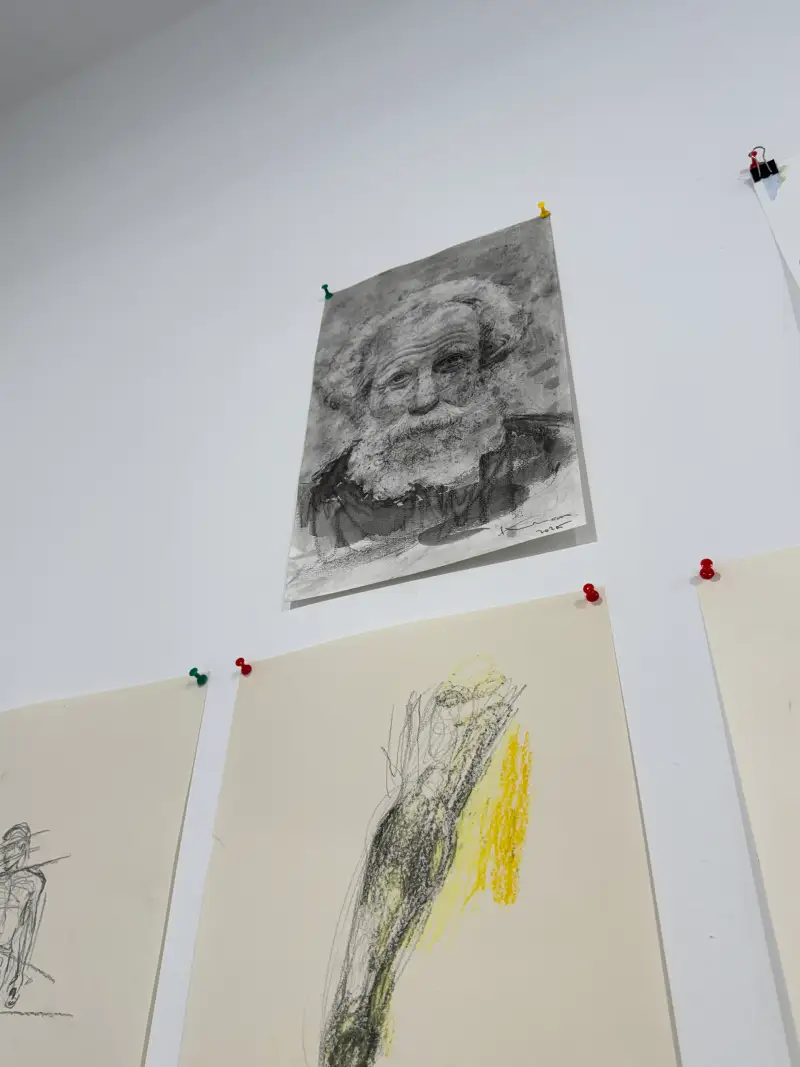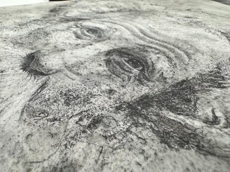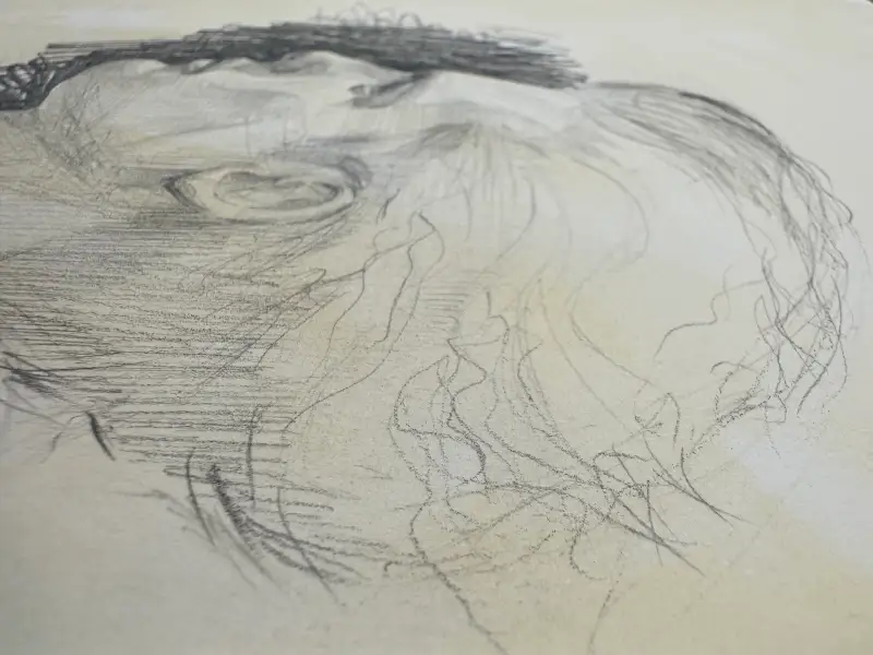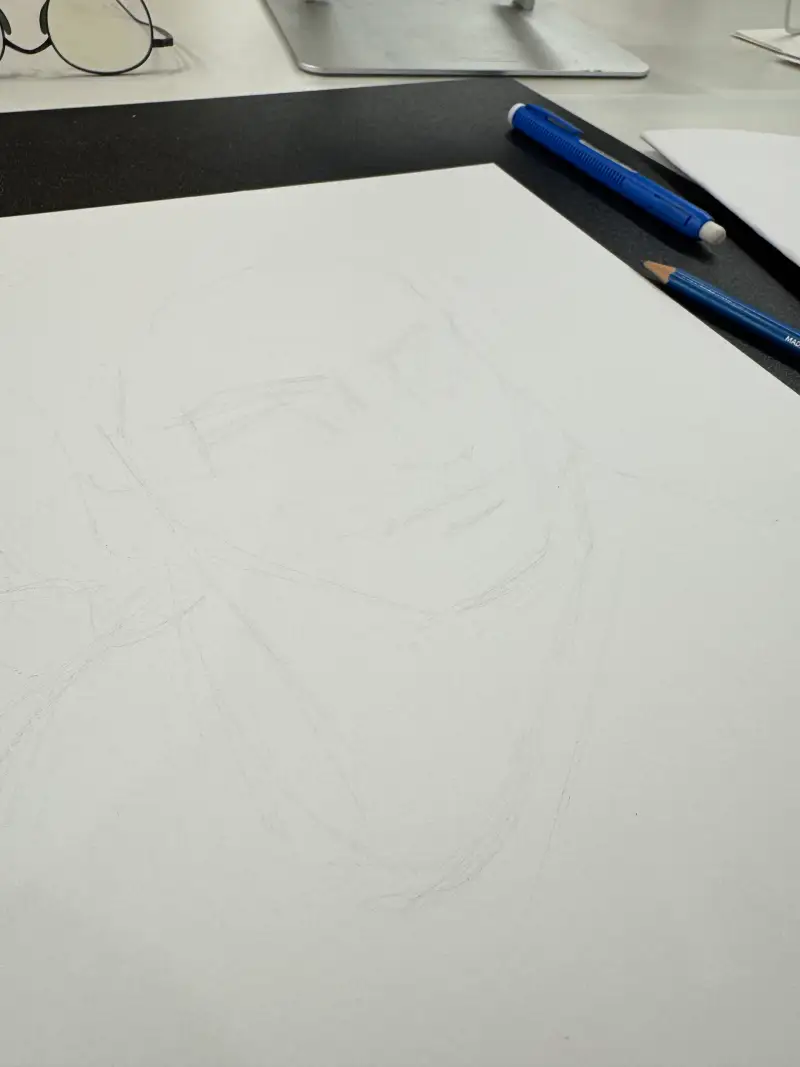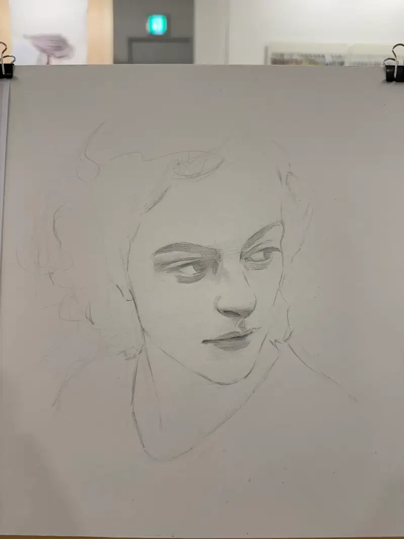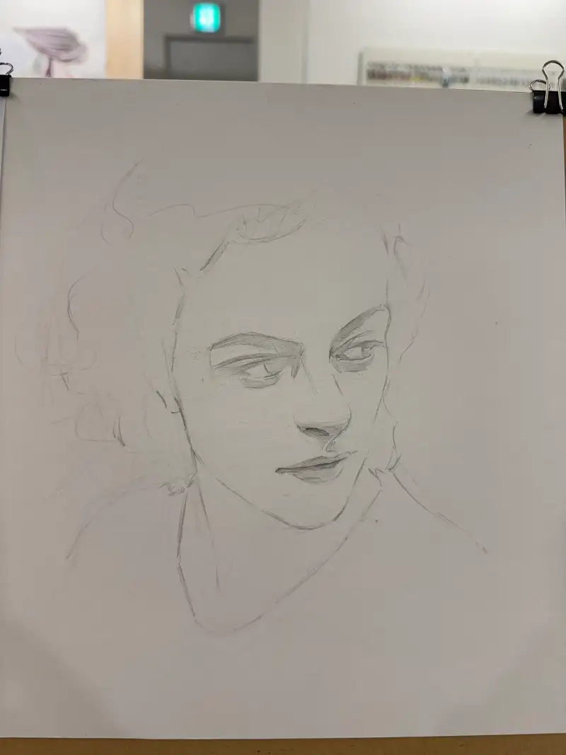 어두운 연필로 이목구비를 제외한 부분들을 자유롭게 드로잉하며 마무리 했습니다. 사진이 조금 어둡게 찍힌것같아서 보정을 한번 해보겠습니다.