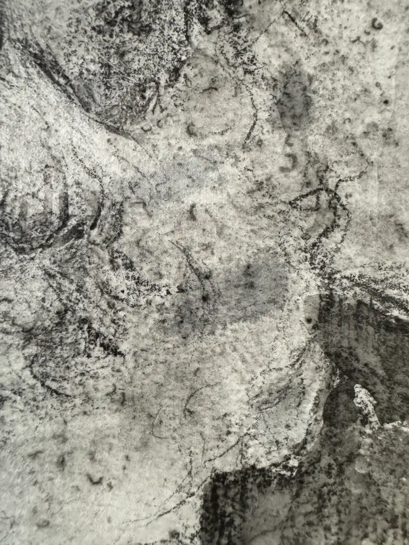 노인의 옷이 되는 부분들은 8B를 이용해서 드로잉했는데요, 역시나! 물을 만나서 나오는 명도가 거의 먹에 가깝게 표현되더군요. 붓질은 규칙적이지 않게끔 최대한 러프하게 작업했어요!