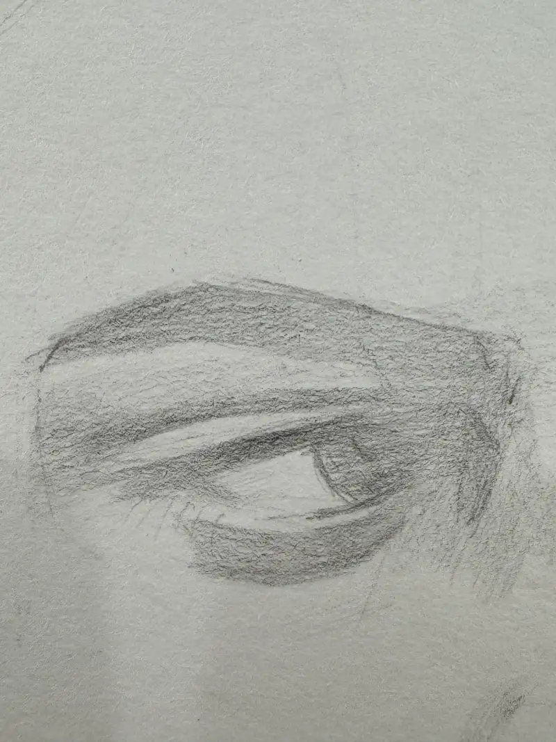형태를 뜰때 간략한 라인들로 위치를 잡아준 후 어둠의 면적으로 형태가 잘 맞는지 체크를 해보시는게 좋아요. (눈사진참고)