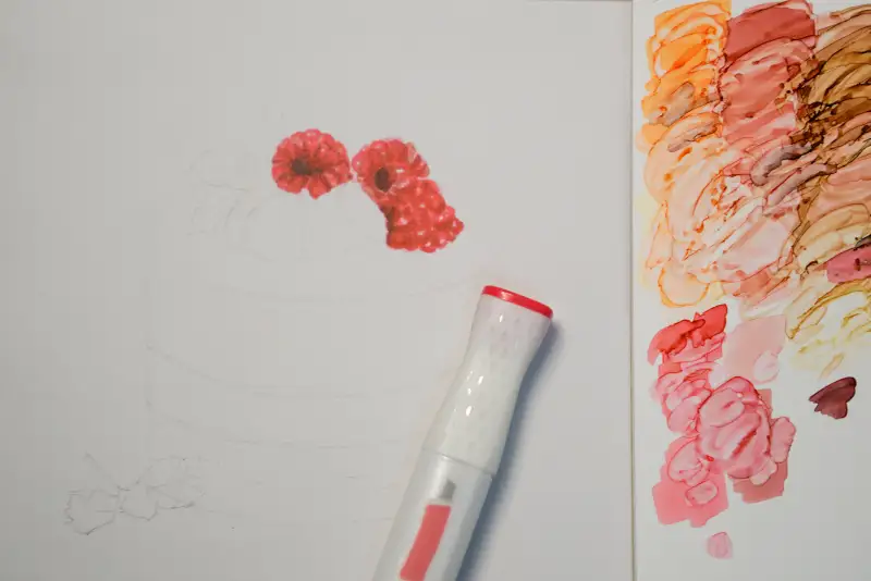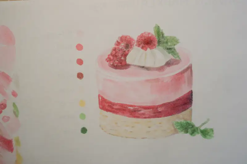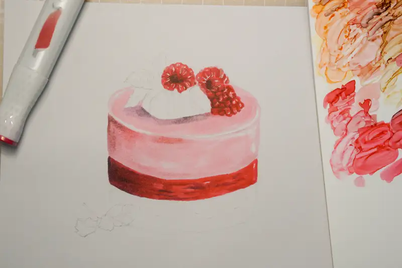 그리고, 딸기무스 부분은 옅은색인 R132번으로 칠해줬고, 그림자 부분은 R137, R147을 블렌딩 팔레트에 색을 조색해서 덧칠해줬어요.
