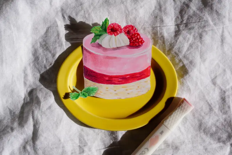우선 딸기 무스케이크 위의 라즈베리부터 칠해줬어요-