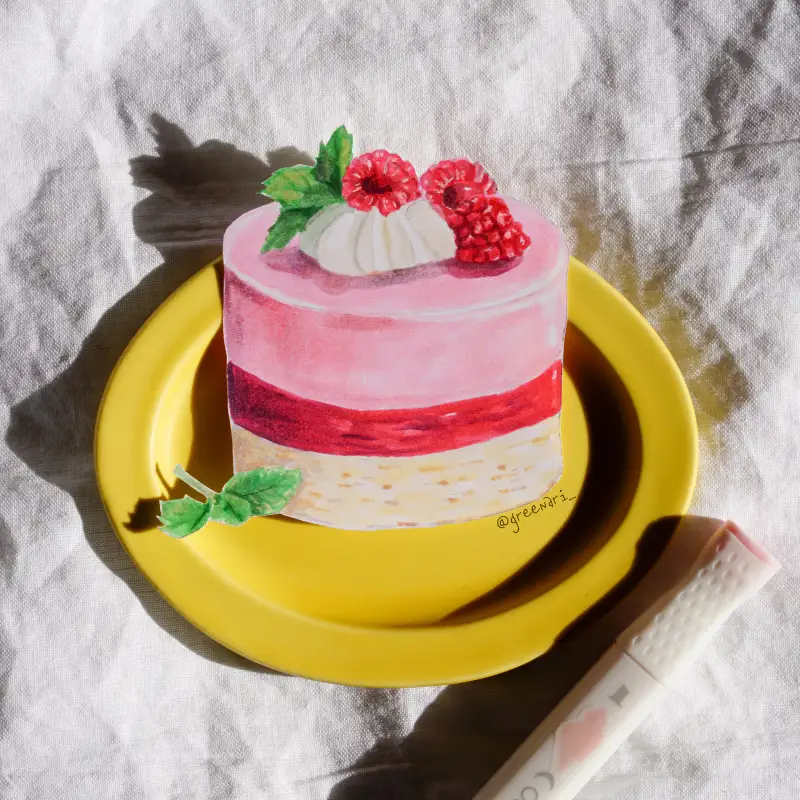 마카로 그려본 딸기무스 케이크! (마카전용지 비교)
