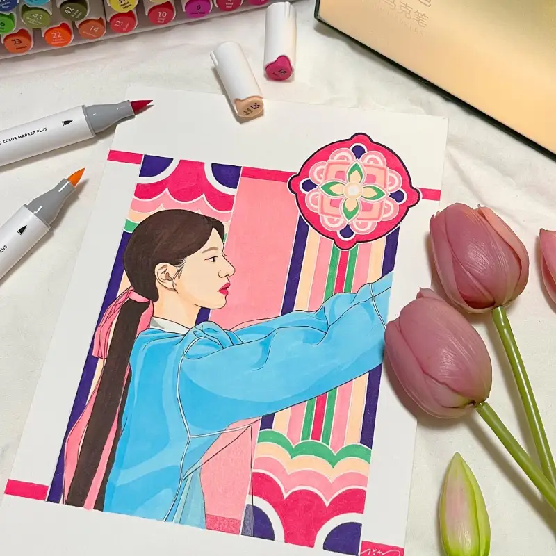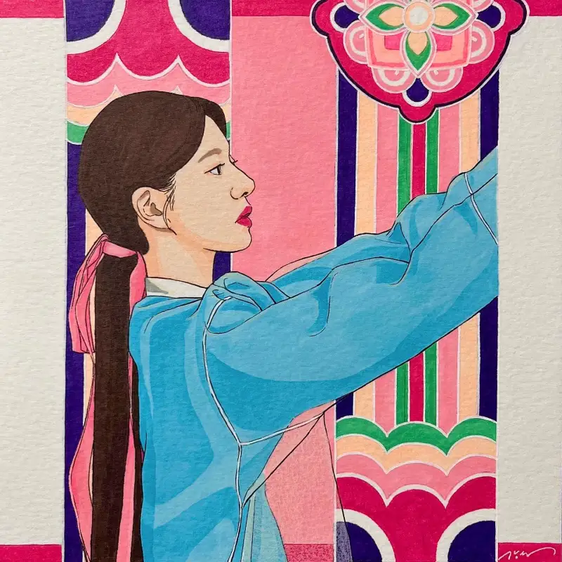한복그림 답게 좀 더 민화느낌으로 표현해주고 싶었는데