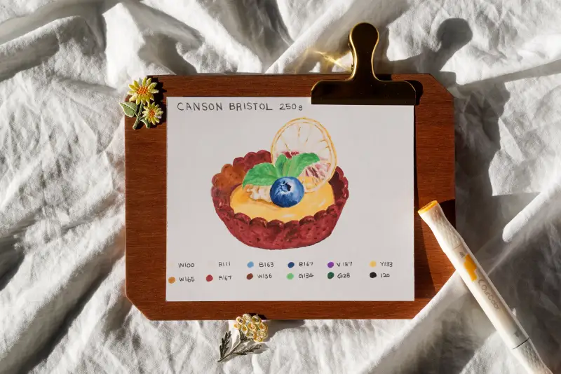 마카 전용지 답게, 블렌딩 팔레트에서 조색한 색들도 종이 위에서 잘 섞여들어가는 느낌이었어요.
