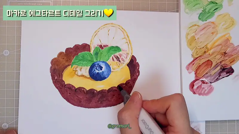 이렇게 해서 마카로 그린 '레몬 타르트' 완성!!🍋