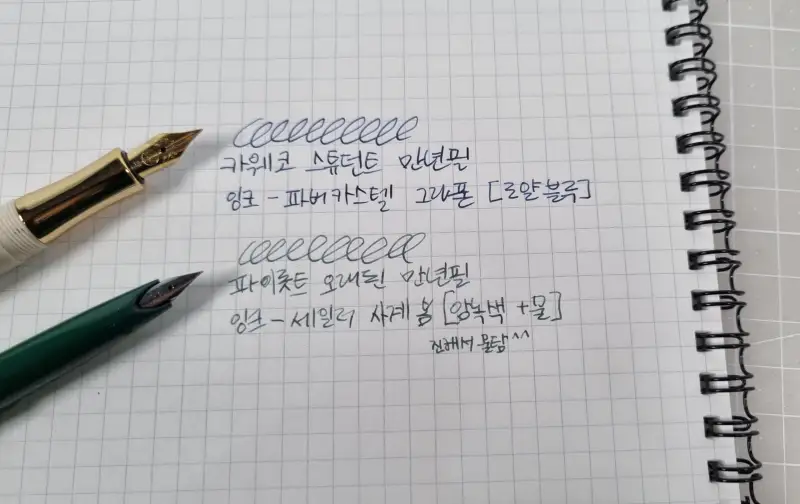 볼펜만 써보다가 만년필에 내장되어 있는 스포이드로 잉크를 충전해서 쓸 수 있다는게 재미있더라구요.