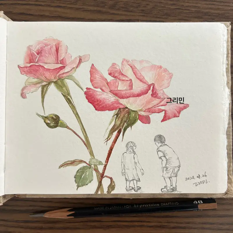 은은한 핑크빛의 장미꽃을 그려 봤어요.