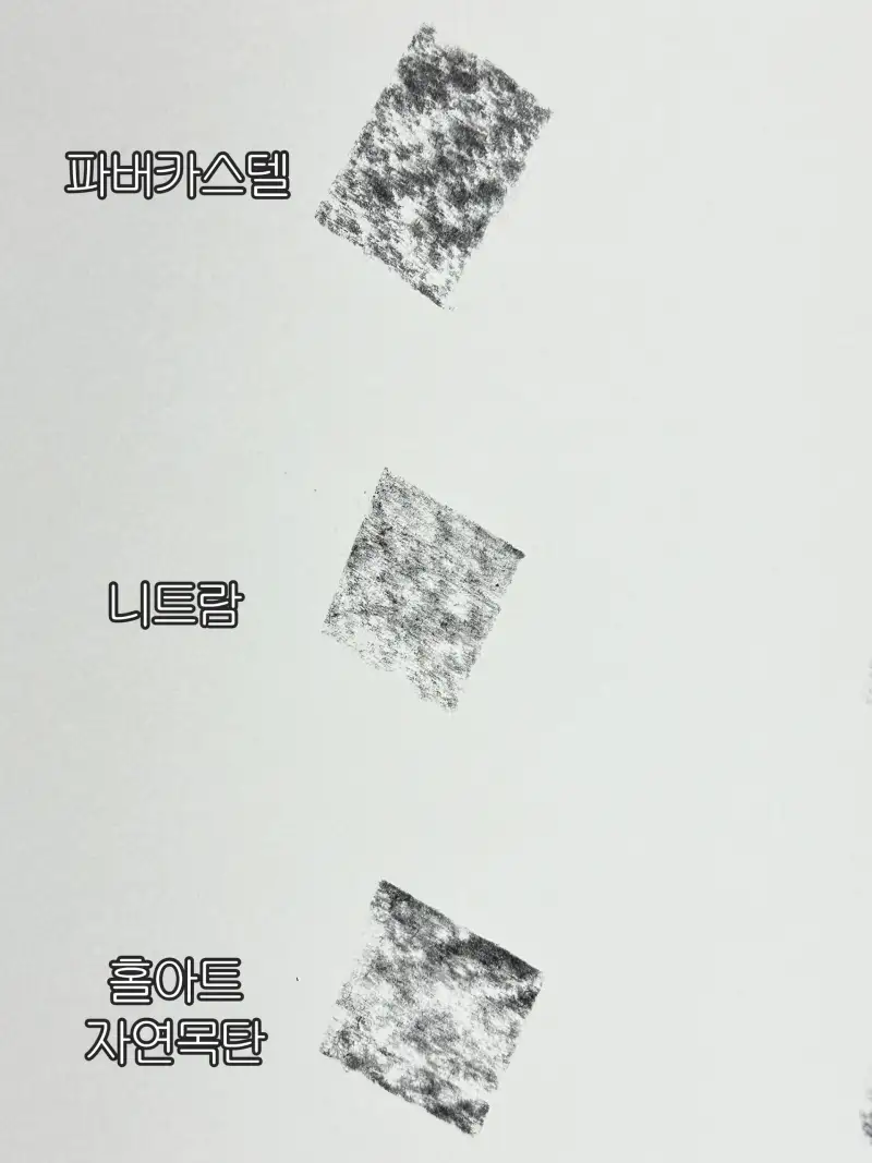 아래는 제가 사용하고 있는 목탄들의 질감입니다.