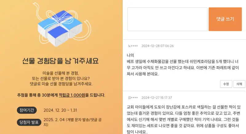 이벤트② 선물경험담 댓글 이벤트 (~1/31 진행 중)