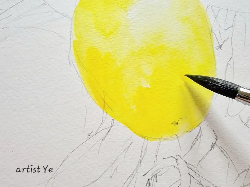 Yellow 와 Blue 계열로 그린 모과 그림 일부이다.