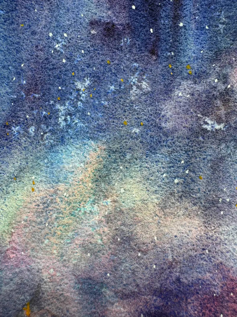 소금을 뿌렸는데 효과가 약하게 나와서 수채과슈로 살짝 화이트를 찍어서 별을 표현해주었어요