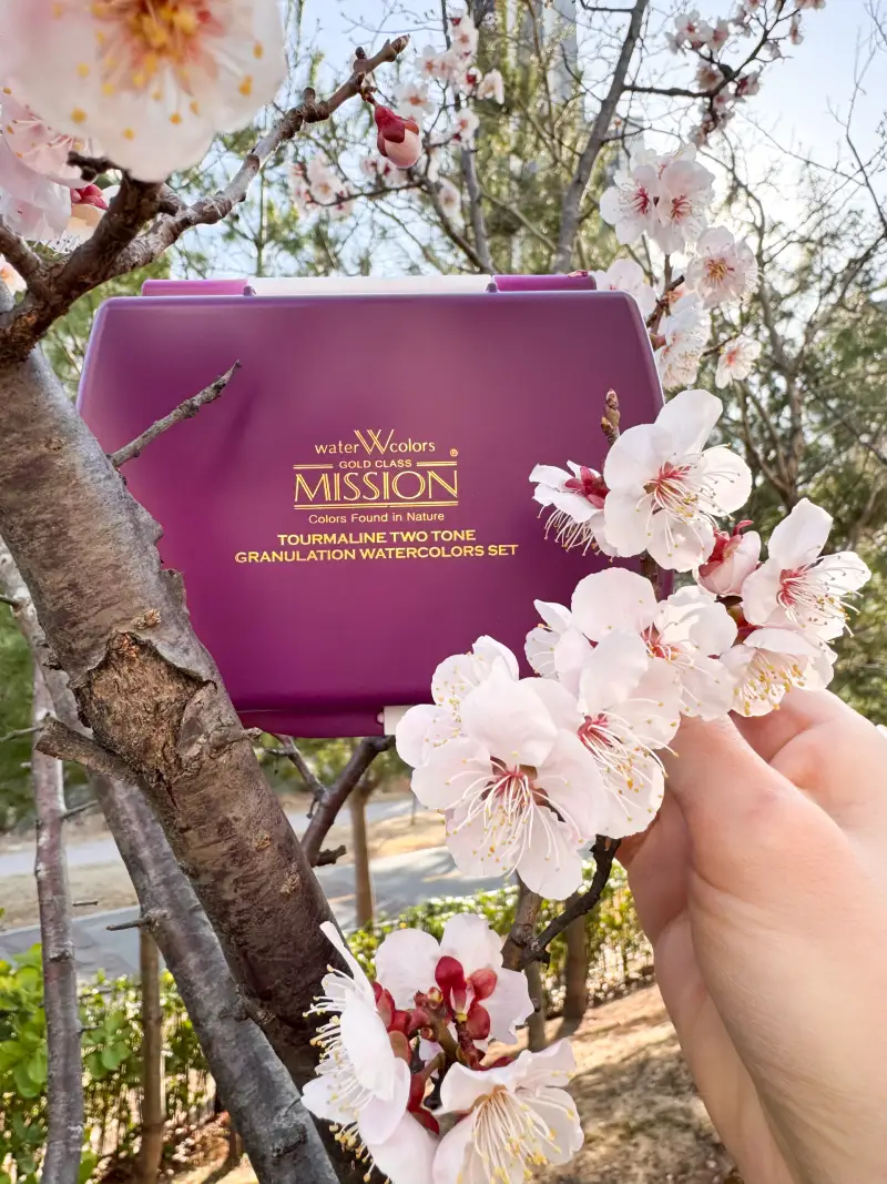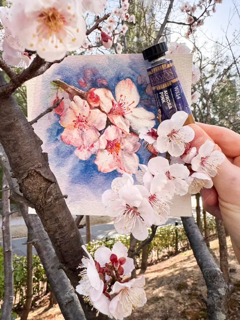 제가 사는 곳은 아직 벚꽃이 개화하지 않아서 벚꽃 친구 매화와 사진을 찍어주었답니다. ☺️ 사실 요 작은 팔레트에 종이 작게 잘라서 테이핑해가서 포켓팔레트처럼 야외스케치를 해볼까 했는데 날씨가 너~~무 춥더라구요🥹