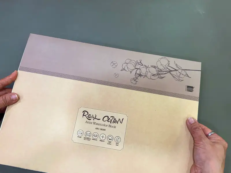 종이는 '미젤로 리얼코튼 아티스트 수채화용지' 사이즈 360x260 300g 20매 Cotton 100% (황목. 중목. 세목)