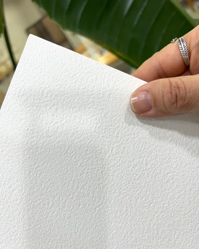 황변 현상이 없는 Cotton 100% 수채화 용지입니다. 펄프종이도 나름 매력이 있지만 펄프가 함유된 용지는 표백제가 포함되어 시간이 흐르면 색이 변하게 됩니다. 정성을 다한 작품이라면 100%코튼을 권유합니다. (저는 입문자와 초보자에게 수채화의 기법과 효과의 차이를 확실히 알수있는 코튼 함량이 높은 용지를 사용하라 권고합니다. )