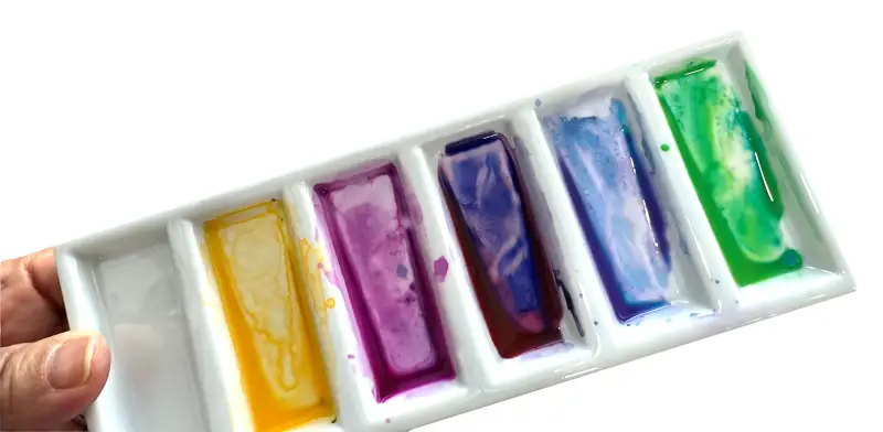 파렛트에 짜 놓으면 그린이 도는 파란색인데 물이 닿으면 완전 그린입니다.