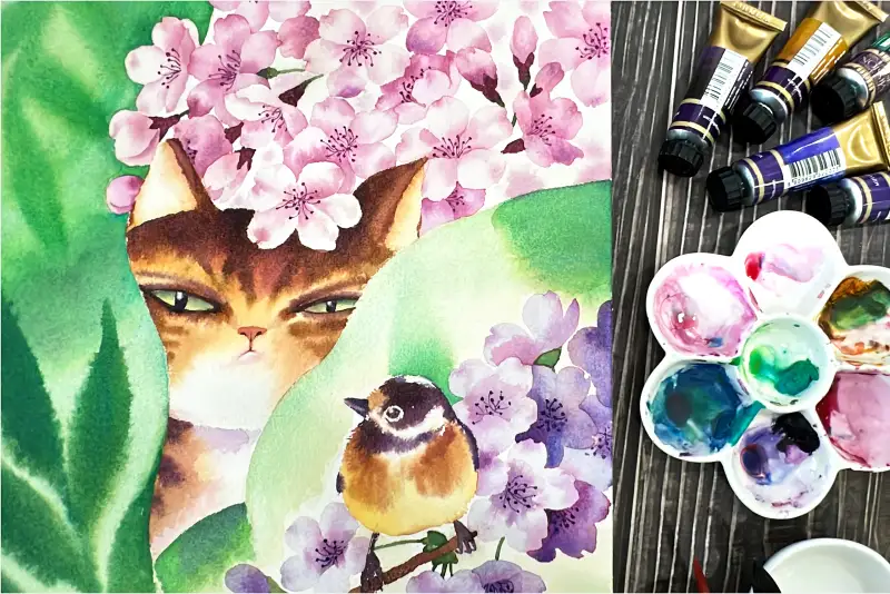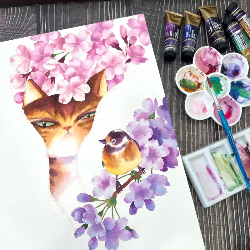 미젤로 투톤 그래뉼레이션 체험단에 신청하면서 당첨이 되기도 전에 성급하게 그릴 그림을 구상하고 있었습니다. 고양이를 아주 화려한 봄으로 그려보는 시뮬레이션으로 풀 가동하면서 말입니다 (요즘 고양이 영상만 봐서 그런답니다)
