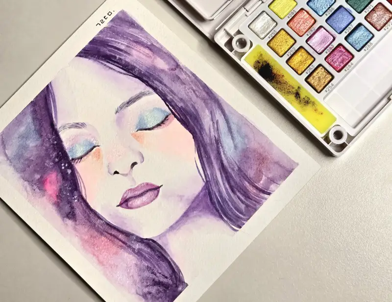 펄이 들어간 색상들이 많아서 그림을 움직이면 반짝반짝 빛이나더라구요? 그런 영롱함을 살릴 수 있게 반짝반짝하게 사람을 그려봤어요.