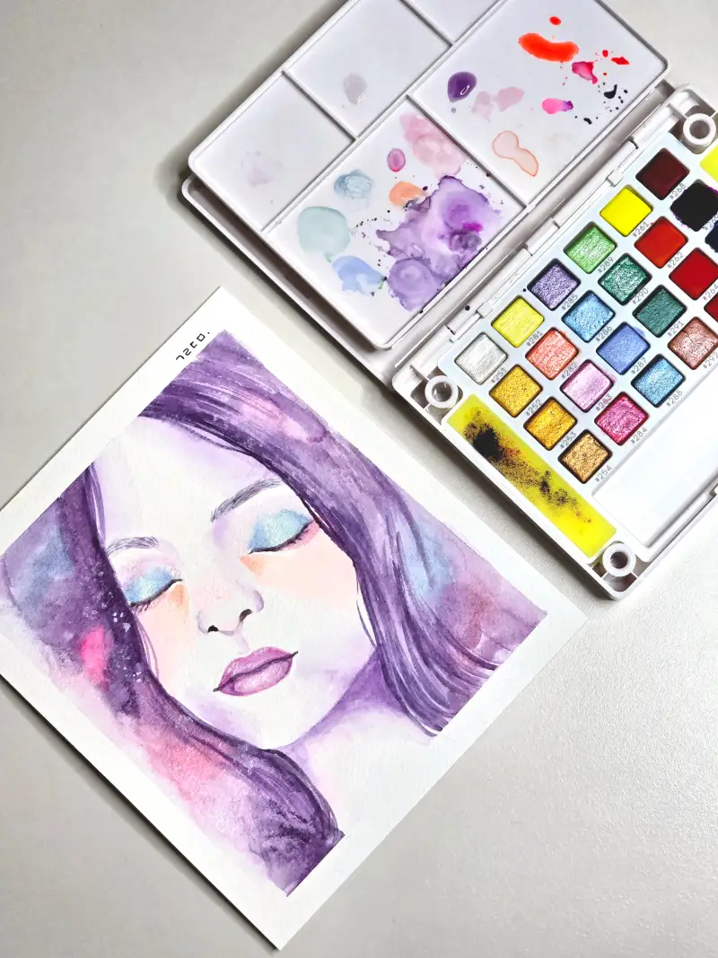 고체물감 특성 상 물감을 진하게 사용하기 위해서는 미리 물을 뿌려 녹여놓는 등의 방식이 필요합니다.