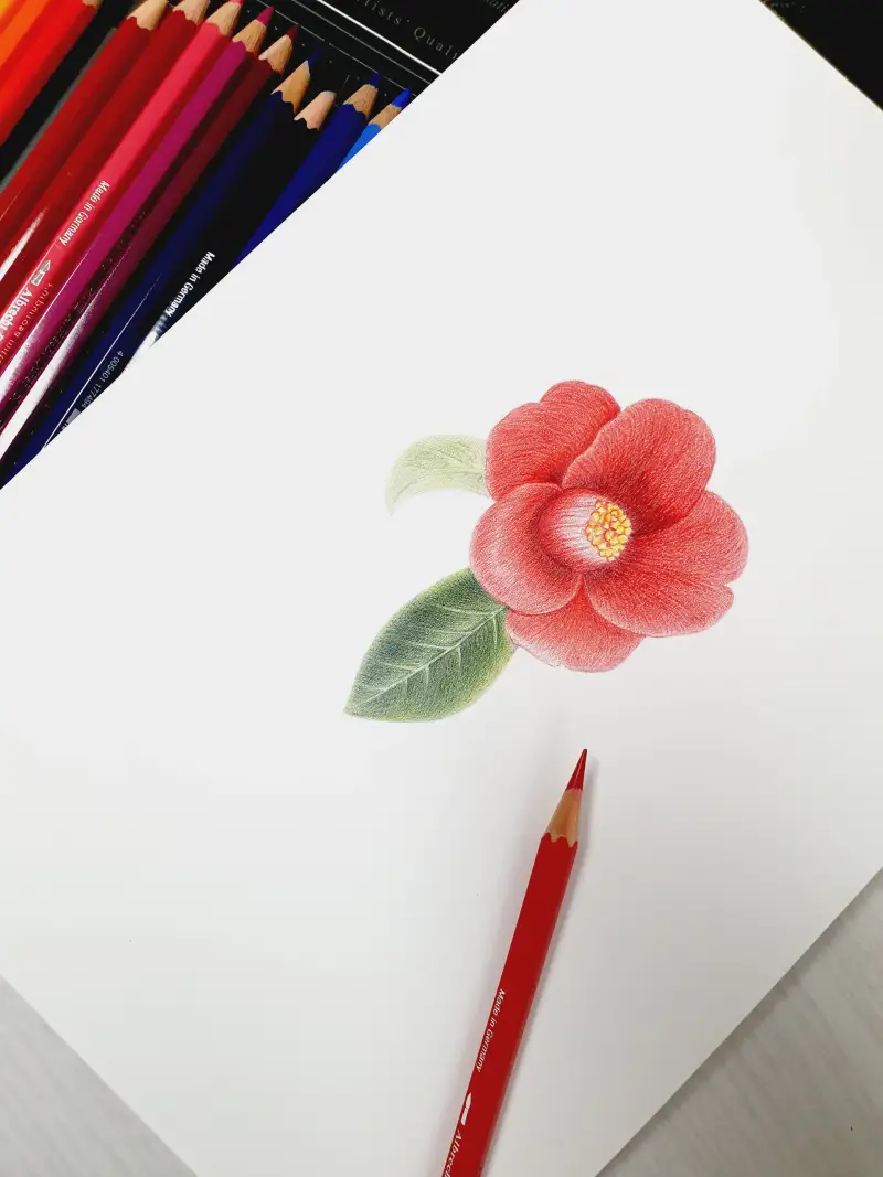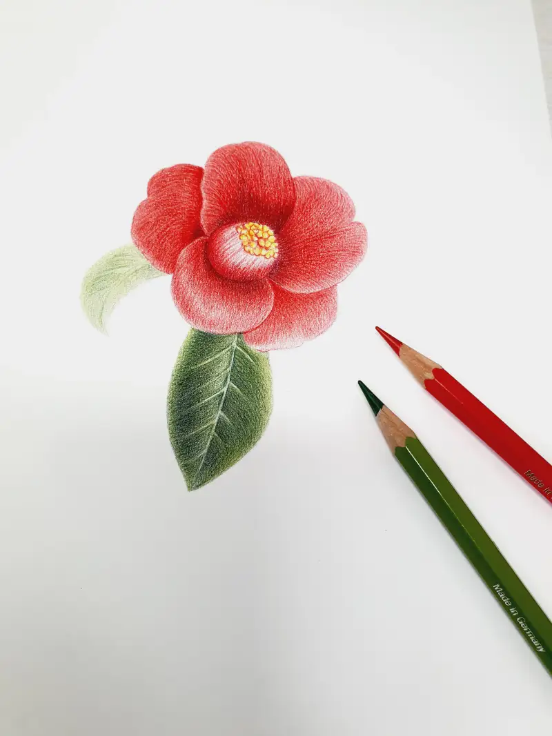 부드러운 색연필로 예쁜 동백꽃 완성^^