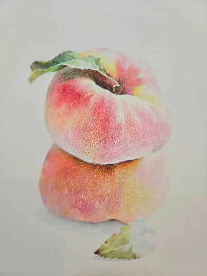 화방넷에서 구매한 스테들러 수채색연필로 복숭아를 그리는 중이에요..