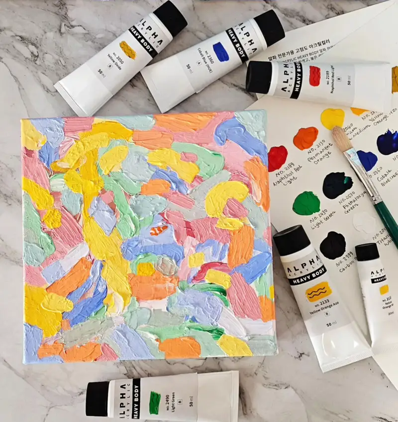 오늘은 캔버스 위에 알파 헤비바디 아크릴 물감을 사용해 보았어요