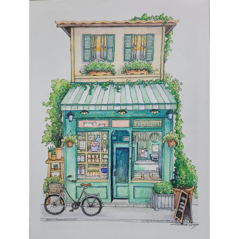 📌색연필로 채색후 물을 사용하여 수채화 느낌을 냈는데 색연필 상태보다 물이 닿으니 색감이 더욱 선명해졌습니다. 또한 색의 번짐이 약해지는 경우가 있는데 종이가 젖은 상태에서 색연필을 다시 사용하면 더욱 색이 쫀쫀해지는 것을 경험했습니다.