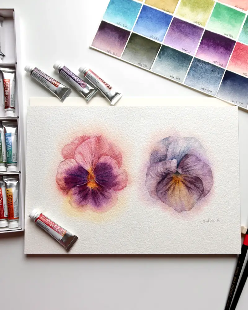📍그리고 HWC 물감의 특징이죠, 높은 채도와 부드러운 발색. 이 특징이 다소 거친 느낌이 날 수 있는 그래뉼 물감에서도 이어진다고 보시면 됩니다 :)
