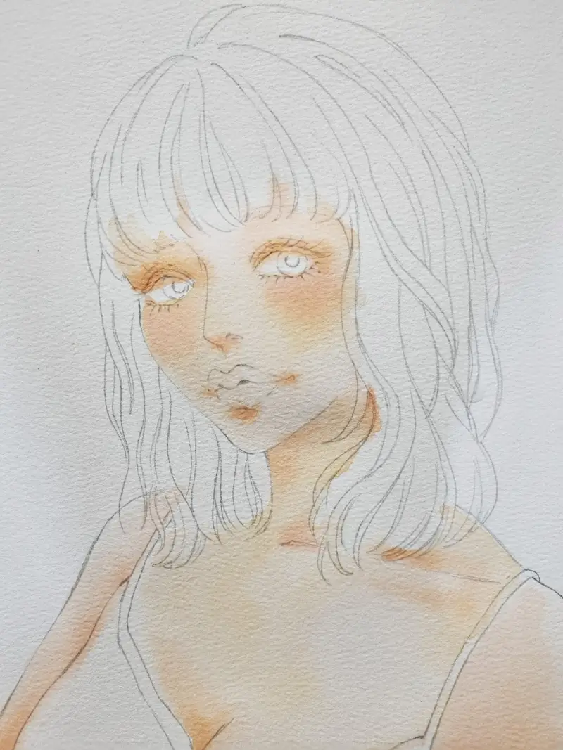 핑크 베이지는 아마 인물화 그리기에 피부 표현을 위한 컬러를 넣어둔 게 아닐까 싶을 정도로  피부 베이스 컬러로 정말 찰떡!! 다만 원색으로 사용시 물을 많이 타서 연하게 사용하세요. 저는  옐로우와 화이트를 살짝 섞어 사용했답니다.