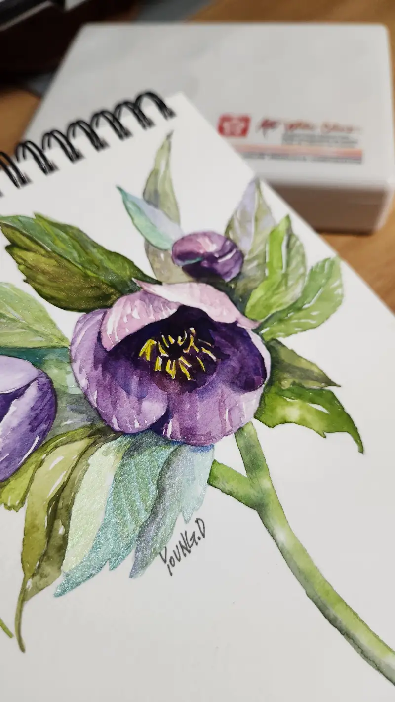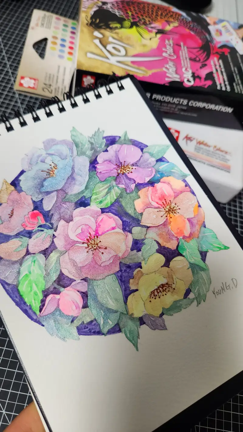 색이 너무 잘 입혀지고 특히나 펄이 잘 표현되면서 샤방한 꽃그리기가 완성이 되니