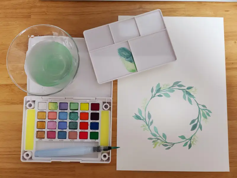 워터브러시가 들어있고, 붓을 닦는 스폰지도 내장되어있어 물통이 딱히 필요하진 않지만 빠르게 붓을 헹구어내기 위해 저는 물을 따로 떠두고 작업했어요.