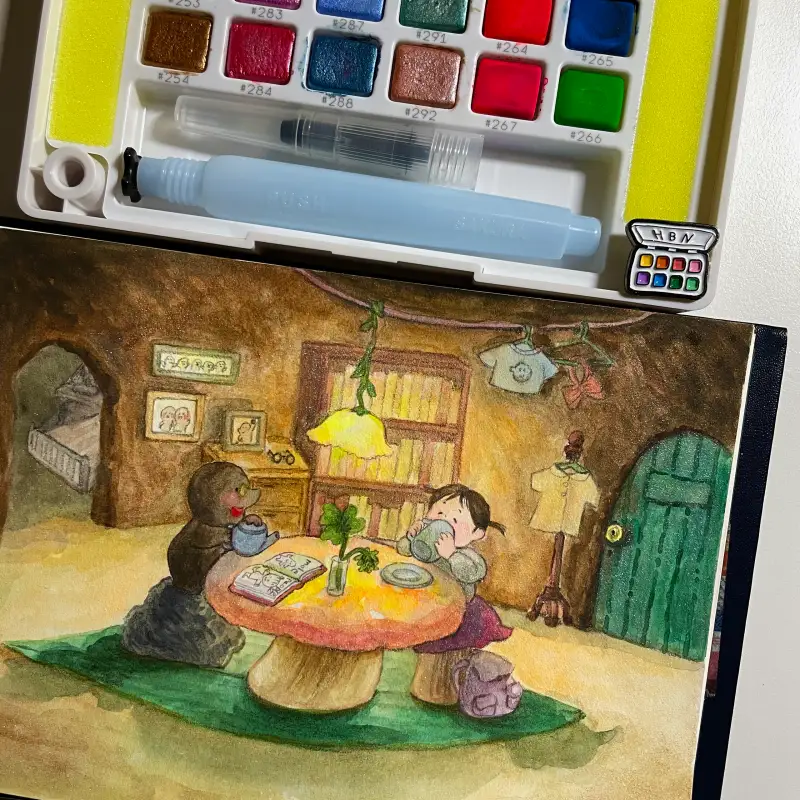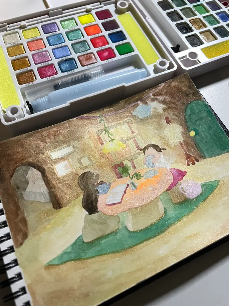 사쿠라 코이 워터칼라 cac 고체물감 24색으로 저번 그림과 이어지는 이야기를 그려봤어요.