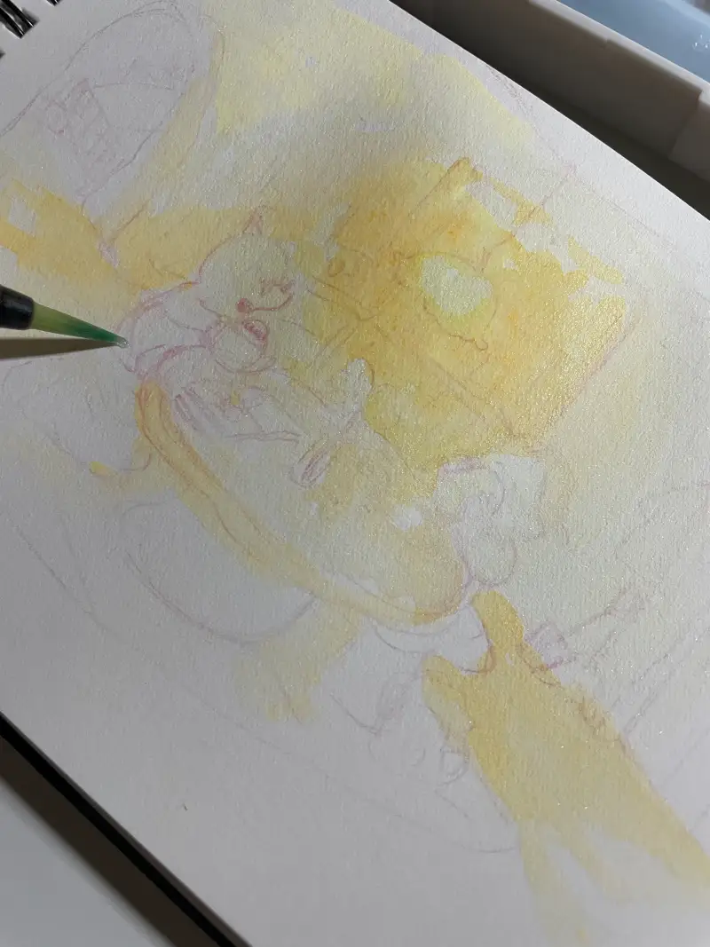 연필로 외각 마무리해주면 완성입니다:) 포근한 느낌과 반짝임 표현이 마음에 들었던 작업이었습니다!