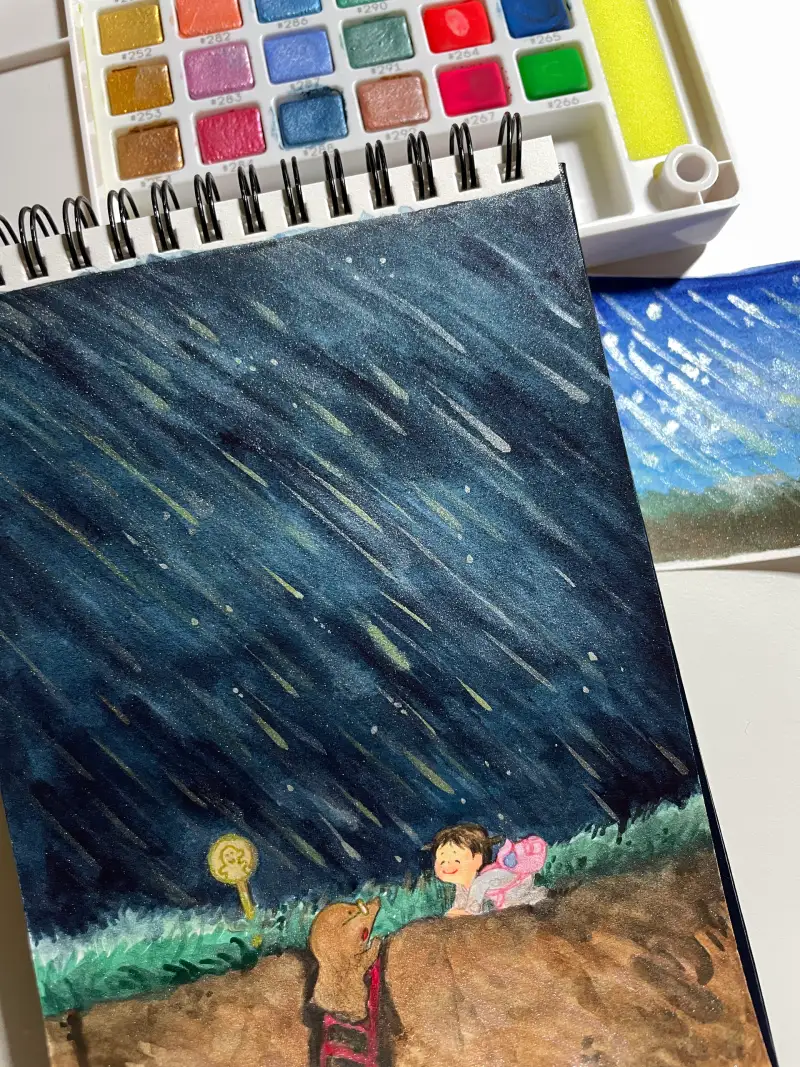 ✨발색력과 은폐력이 뛰어나 제가 표현한 별들처럼 색을 깔고 그 위에 올려도 선명하게 잘 올라왔어요!