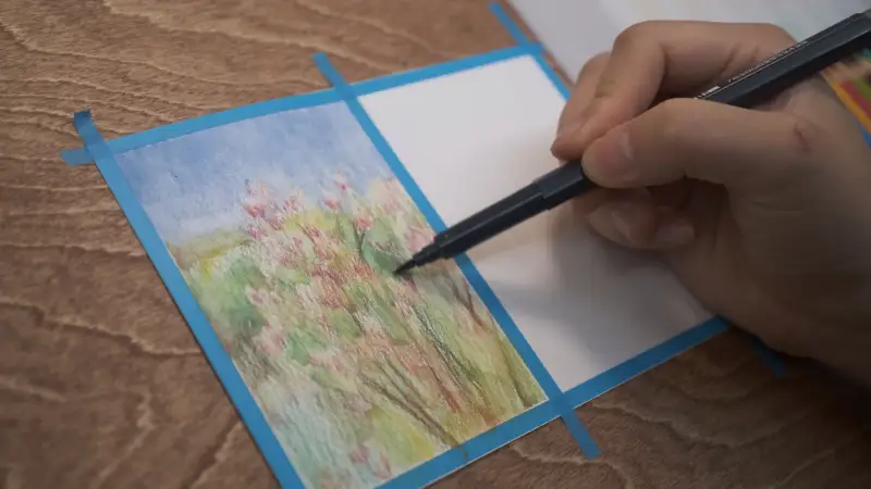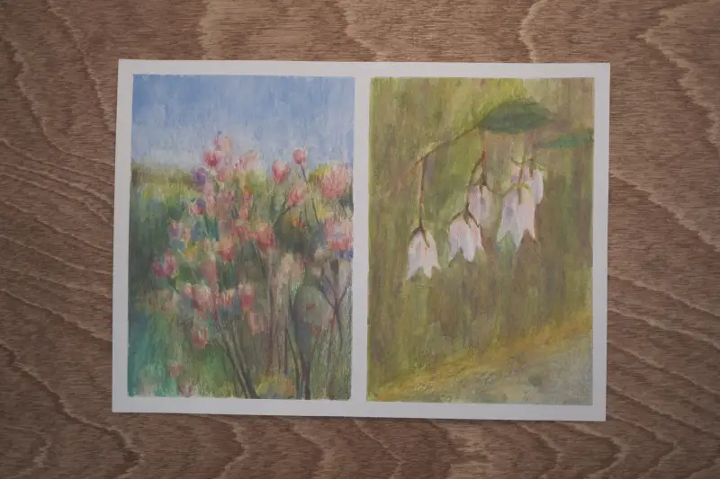 샘플로 그려보고 바로 동봉되어있는 엽서 패드에 자연 그림을 그리기 시작 했습니다. 이건 첫번째 그림.