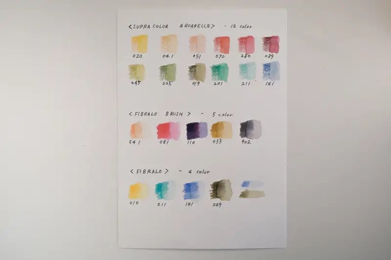 색연필 , 브러쉬펜 , 팁펜 순서로 발색표를 모두 만들어봤습니다.