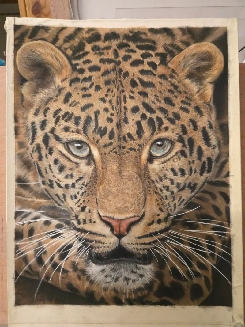 이번엔 색연필과 파스텔연필로  표범을 그려봤어요
