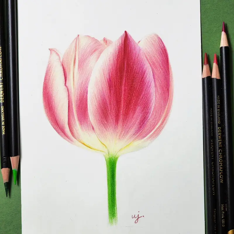 수성색연필과 비슷한 느낌을 받은 만큼 역시나 섬세함을 요구하는 보태니컬 아트에 적합한 색연필이었습니다. 굉장히 섬세한 선을 긋기 좋았어요. 색연필이 종이에 미끌리듯 써지는 것이 아닌 부서지는 느낌으로 써지기 때문에 일정한 색상으로 선이 유지 되어서 좋았습니다.