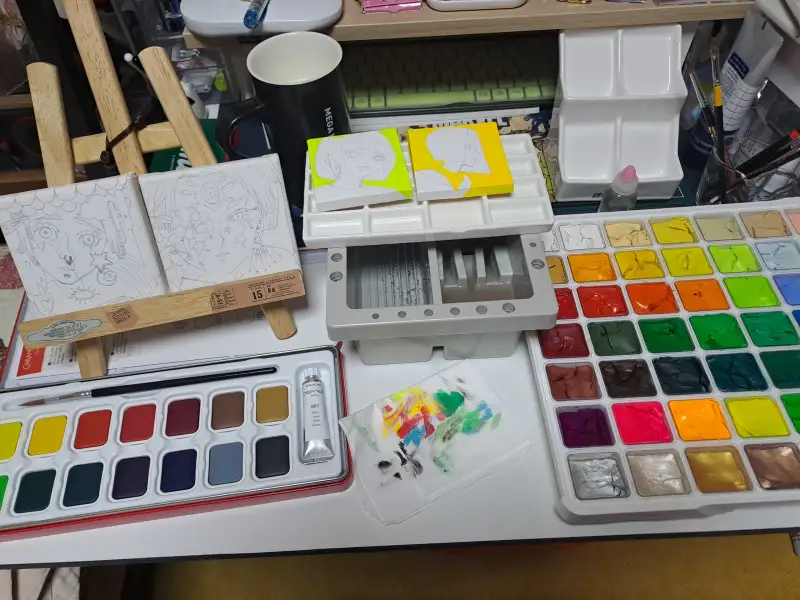 미니 캔버스에도 과슈를 발라봤습니다만, 안 올라가더라고요. 너무 고생해서 바탕까진 발랐는데 비추천합니다.