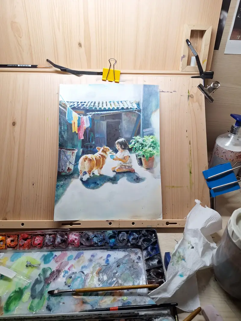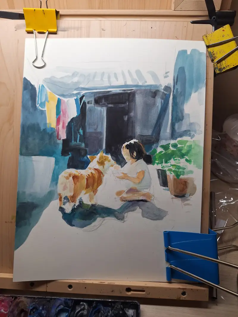 초반과정은 가벼운 위치를 잡아 두면서 들어가요, 이렇게 많이 만지지 않은 느낌도 수채화가 가지는 매력이라 과정을 남기게 되었어요~