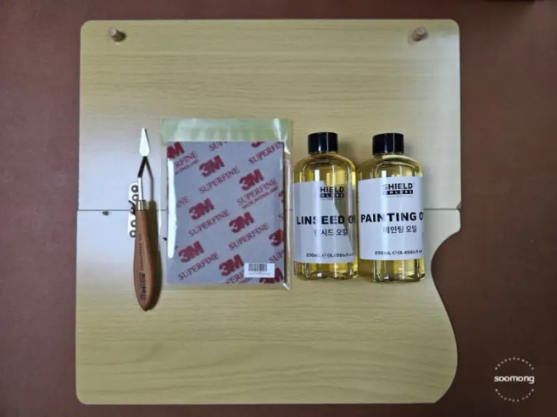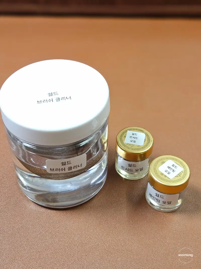 브러쉬 클리너 열때 엄청 떨었는데 (기름냄새에 엄청 민감한 편이라) 냄새가 안나서 어 이상하다 싶어서 코박고 맡아봤는데도 안나는 거예요 오히려 페인팅 오일에서 나는 냄새가 더 강하게 느껴지는 정도예요 (상대적인거지 페인팅 오일이 그리 많이 나는건 아니에요)