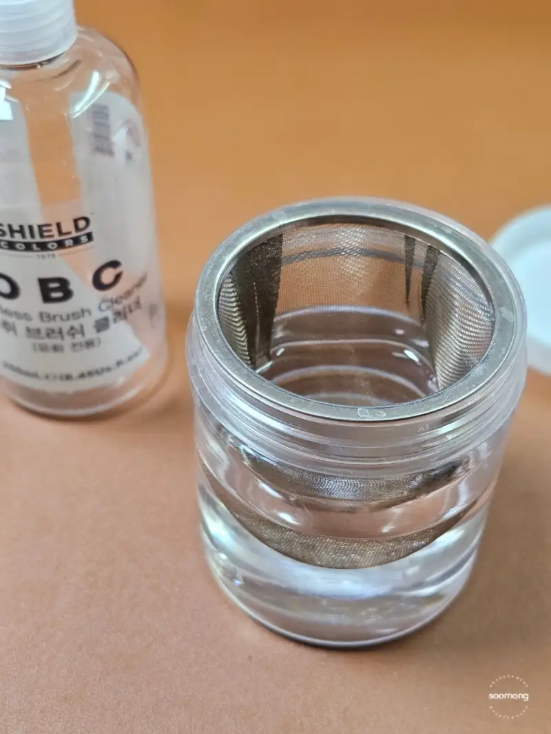 붓 세척통을 구입하셔도 되지만 전 버릴까했던 차망이 빈통에 잘 맞아서 브러쉬 클리너를 담아줬답니다.