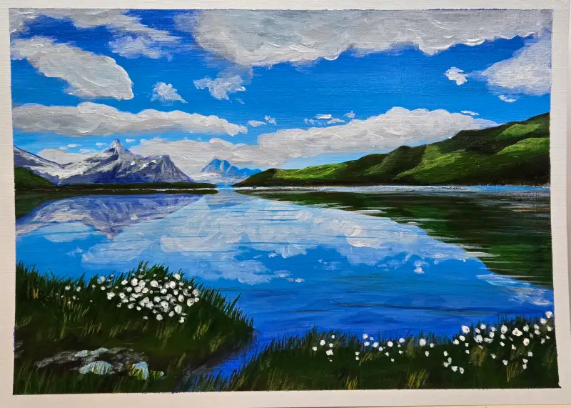 앉아서 발색표를 만들어보니 채도가 높고 선명에서 작년에 여행가서 찍은 스위스 호수를 그려보았어요.