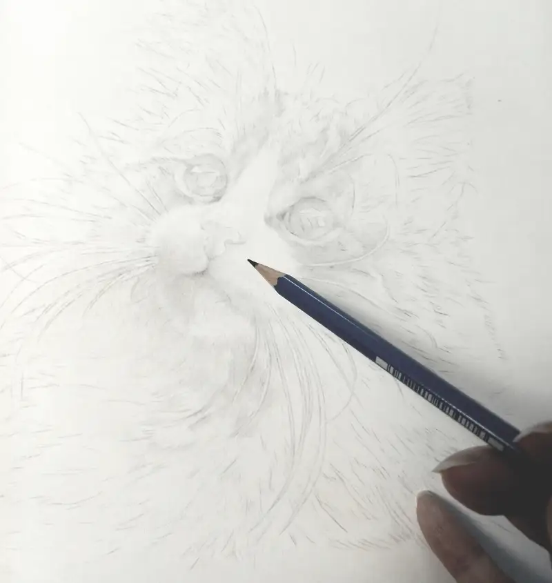 그렇게 헤어(털)의 부드러운 부분을 넓게 문질러 묘사하면서 세부묘사도 해 줍니다.