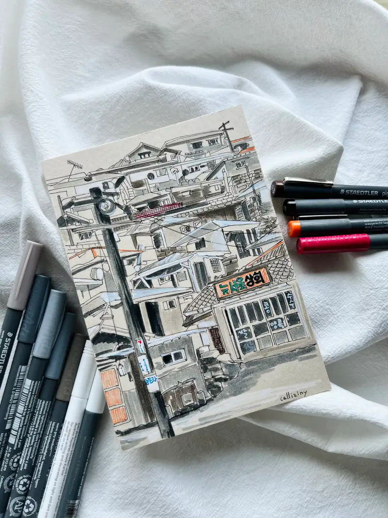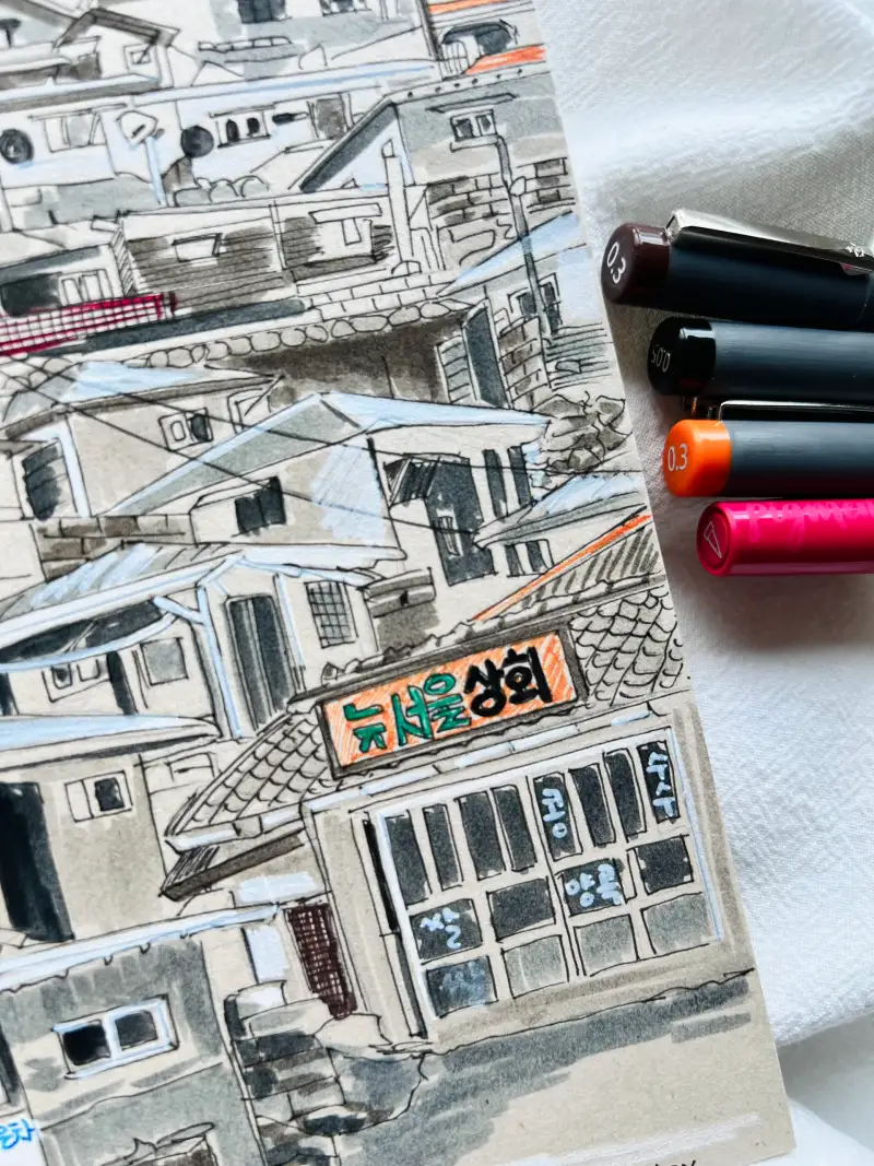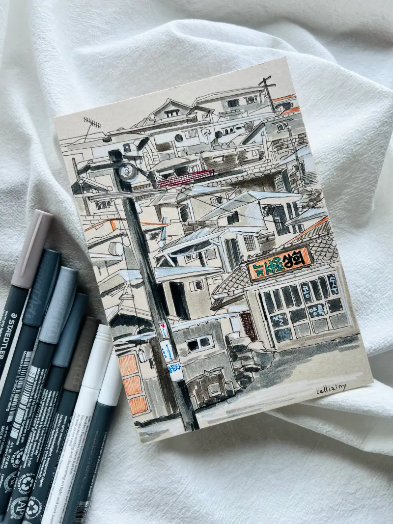 스테들러피그먼트 아트펜으로 순천 드라마세트장 그리기